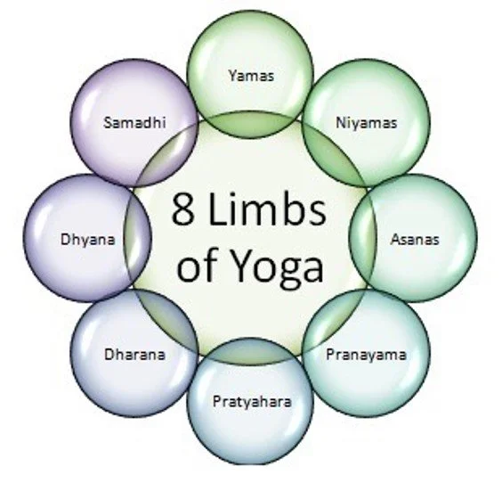As described in the Patanjali Yoga Sutras, the main text for traditional yoga practice, there are eight limbs of yoga. These eight limbs are yama (moral restraints), niyama (ethical duties), asana (yoga poses), pranayama (breathing techniques), pratyahara (sense withdrawal), dharana (concentration on a single point), dhyana (meditation), and samadhi (enlightenment).